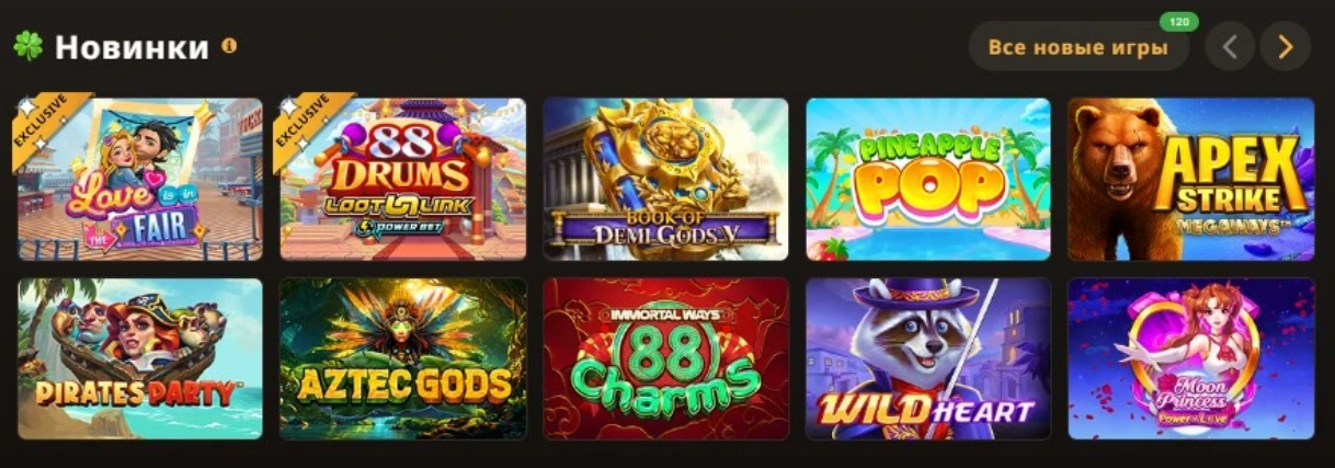 - слоты, которые отличаются тематикой и количеством линий выплат, бонусными функциями, уровнем волатильности;