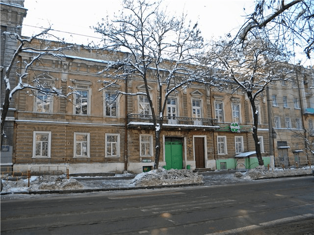 Як видно з газетних публікацій, спочатку навчальний заклад розмістився в досить відомому в ті роки Будинку Перкеля (називався на ім’я домовласника). Ця П-подібна будова з прохідним двором та наскрізними парадними стояла буквально за 5-7 хвилин ходьби від самого центру міста.