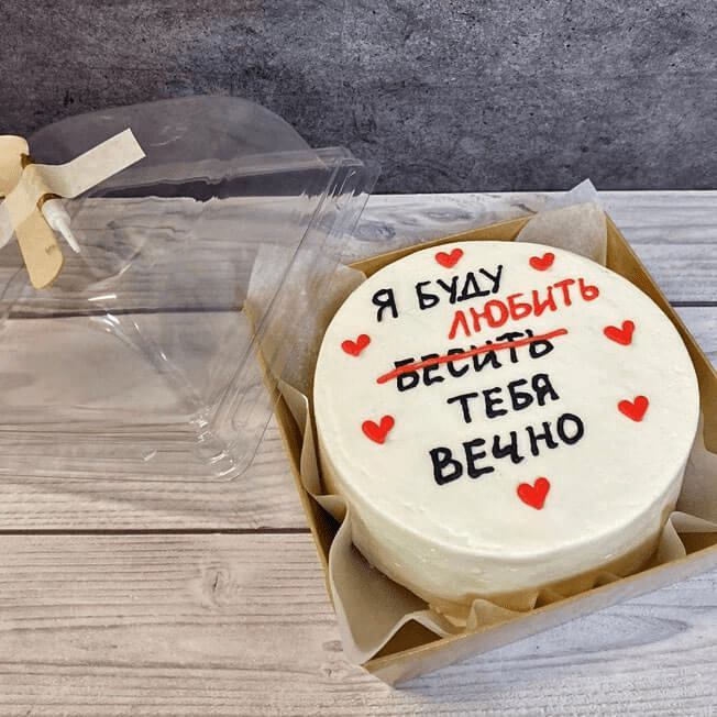 Цілий торт, вагою два кілограми, може здатися занадто великим. Але в наші дні все більше набувають популярності бенто-торти. Він вагою 400-500 грам і розрахований на 1-2 порції. Їх часто прикрашають всілякими написами та це стане чудовим доповненням до найромантичнішого вчинку.
